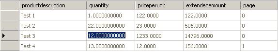 SELECT productdescription, quantity, priceperunit, extendedamount, page = (CASE WHEN (Row_Number()