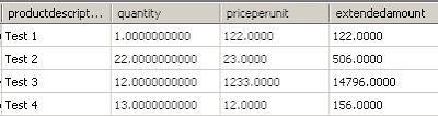 SELECT productdescription, quantity, priceperunit, extendedamount FROM FilteredQuoteDetail