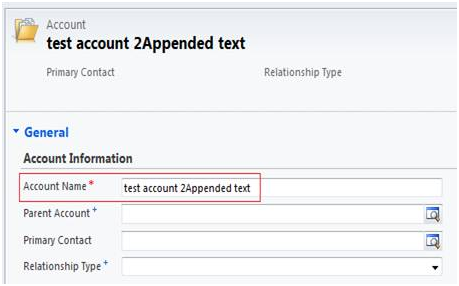 2. Append with: This operator can only be used with text field. It will append specified field’s value or the default value to the existing value. This operator has introduced in CRM 5.
