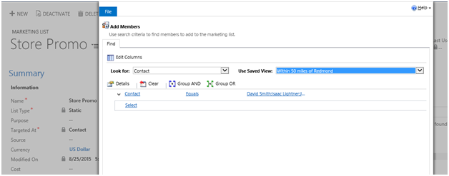 Add voila, you have your Marketing List ready with members selected based on Geographic search.