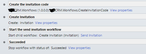 Call Microsoft Portal’s ‘Send Invitation’ custom workflow assembly that sends the email created above to invitees.