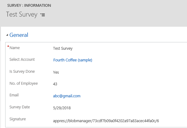 Note: The pen input control will give BLOB data string and this signature will not be displayed on the Dynamics 365 for Phone app.
