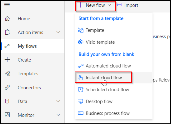 • Create new Instant cloud Flow and select the PowerApps trigger.