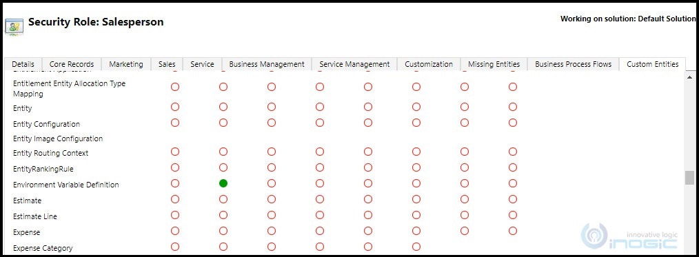 One thing to be noted is that to make use of the environment variables in any of the above, the user in context must have the privileges to access both the entities i.e. Environment Variable Definition and Environment Variable Value. The privilege assigned to the entity Environment Variable Definition gets inherited by the entity Environment Variable Value as well. So you only see the entity Environment Variable Definition while assigning the privilege from the security role as below.