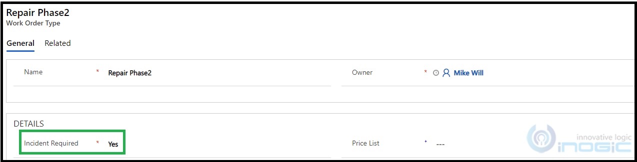 Let choose “Work Order Type” which has “Incident required”= Yes, as shown below: