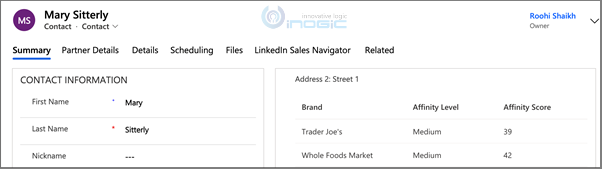 you are able to see the measures, insights and brand affinity from Customer Insights right within your Contact form in Dynamics 365 Sales.