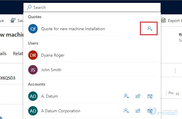 With this modification, now the search list will show the assign quick action against the search results for quotes.