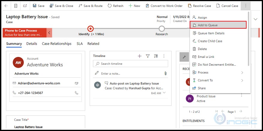 7. It will open the Add to Queue window. Here, select the queue which you have just created which has “Entity” as Queue Type.