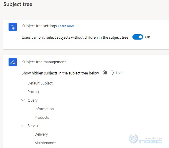 Once you enable this setting, users will only be able to select the subjects that don’t have child subjects. For example, if below are the current subject tree then the user will be able to select all the subjects except Query and Service as those are Parent subjects.