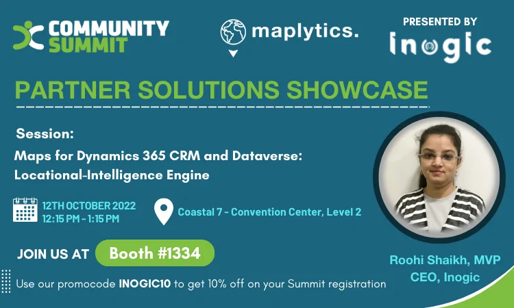 It is at the Community Summit, North America, Orlando, the experts of Team Maplytics/ Inogic will be conducting an hour-long Live Partner Solutions Showcase, presenting the outstanding features of Maplytics in-depth! Doesn’t this sound mind-blowing?