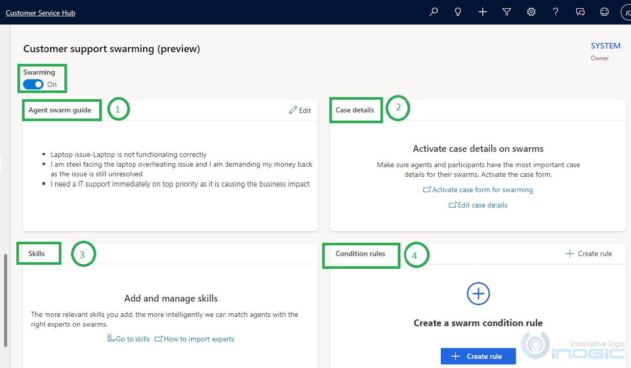 The new swarming feature allows agents and SMEs to collaborate intelligently and work on several different items related to the issue and achieve the goal of quick responsiveness. Since they are all part of the same Swarm chat in Microsoft teams, they can keep each other updated in real-time.