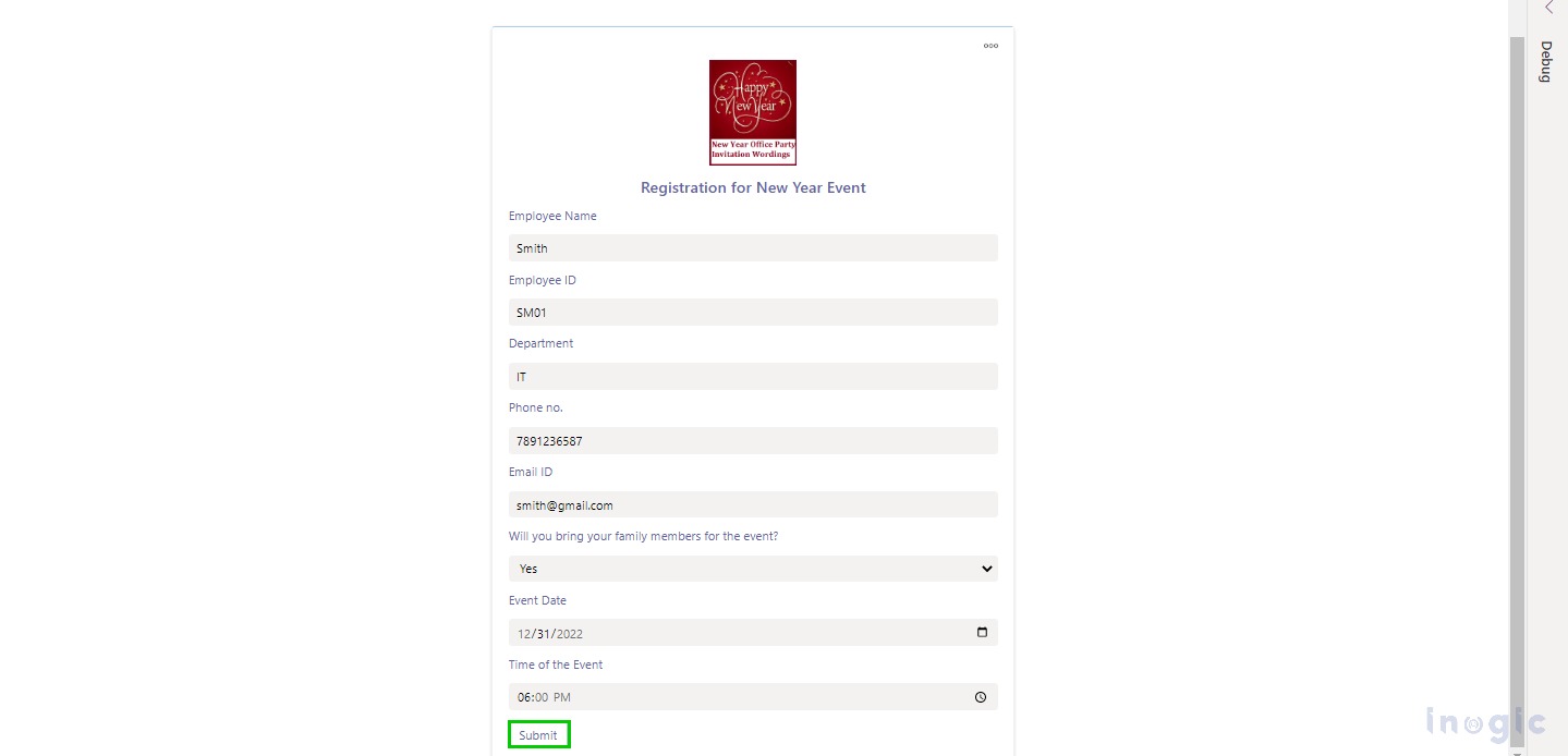 3. After clicking on submit button, the user will get navigated to the next screen where the user can check the record id.