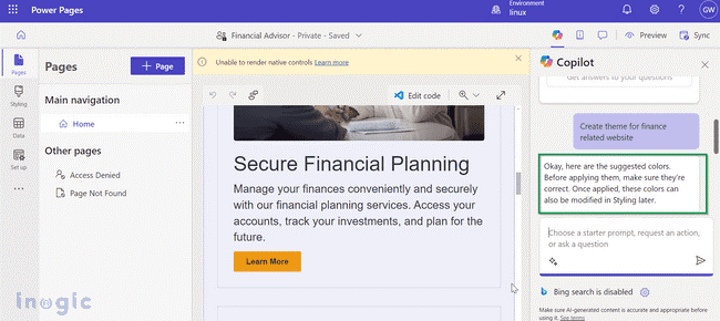 With Co-pilot, theme generation for app development will be simplified, accelerated, and made more intuitive. Thanks to various AI-powered features, your theme ideas can come to life in ways you never would have imagined. Co-pilot with Al may produce theme colors, components, schemas, or whole pages. You could improve the following UI visual elements, for instance: