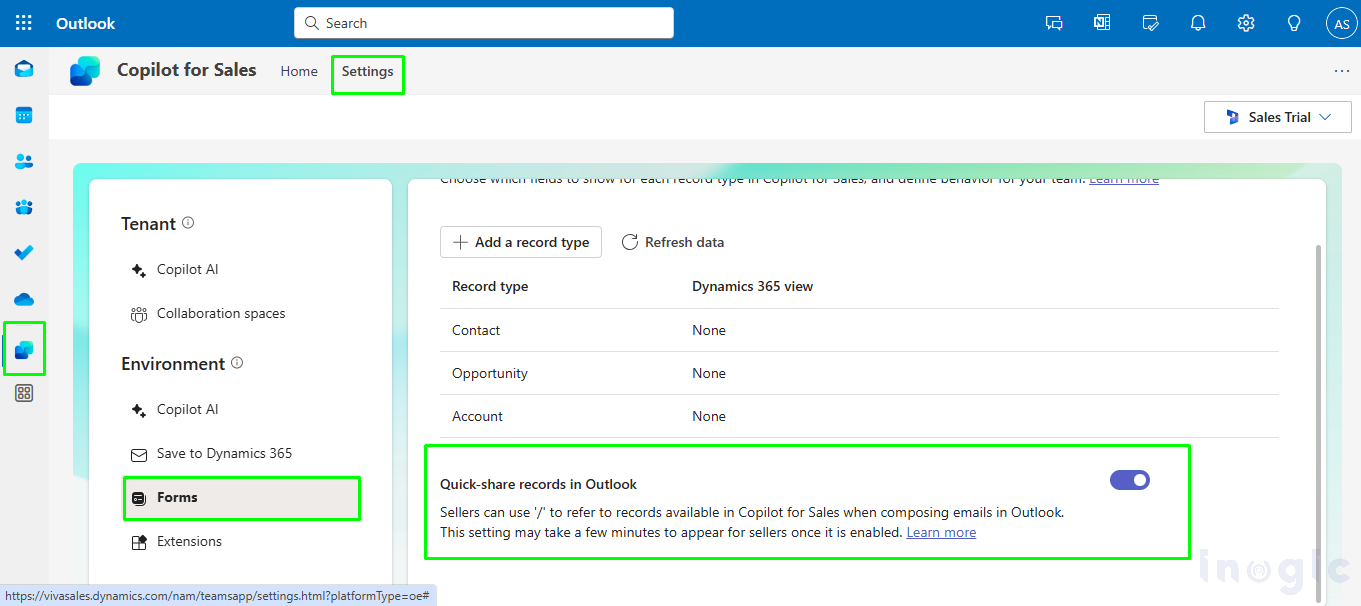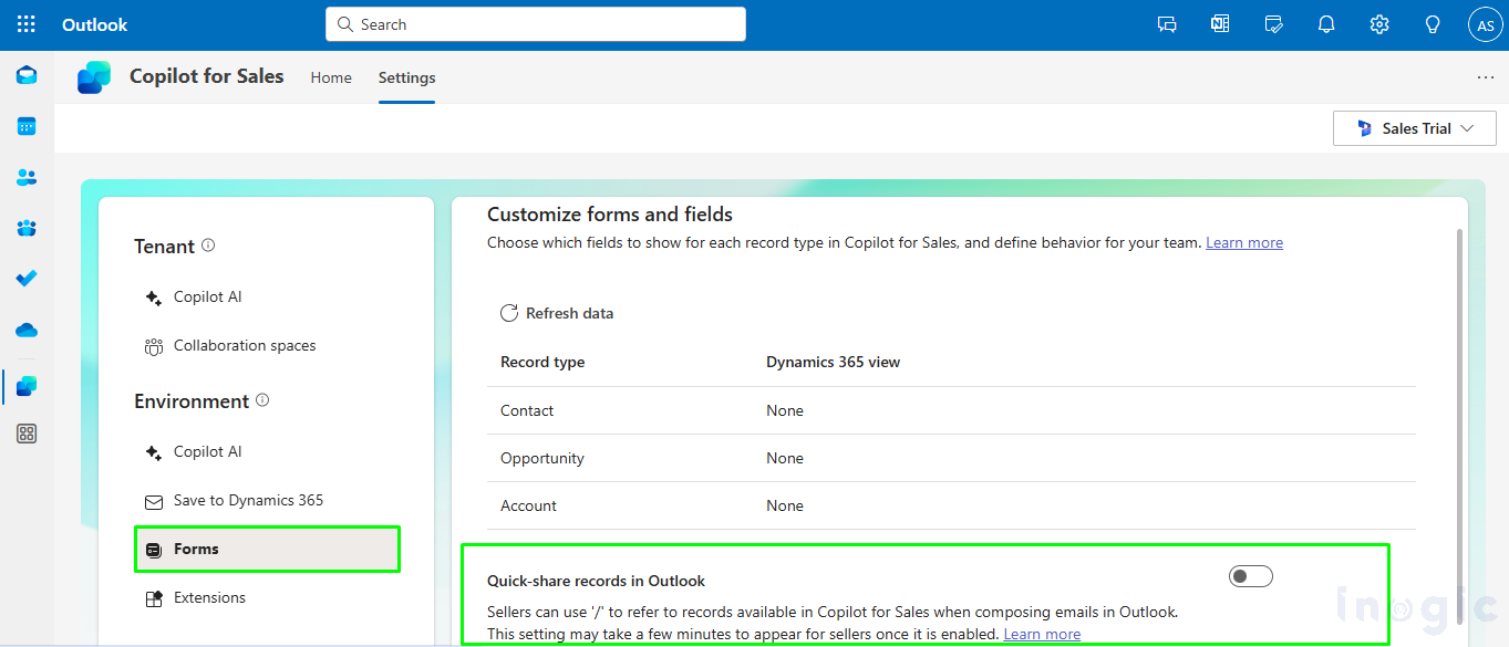 - Click on Forms. You’ll notice that sharing records is disabled by default.