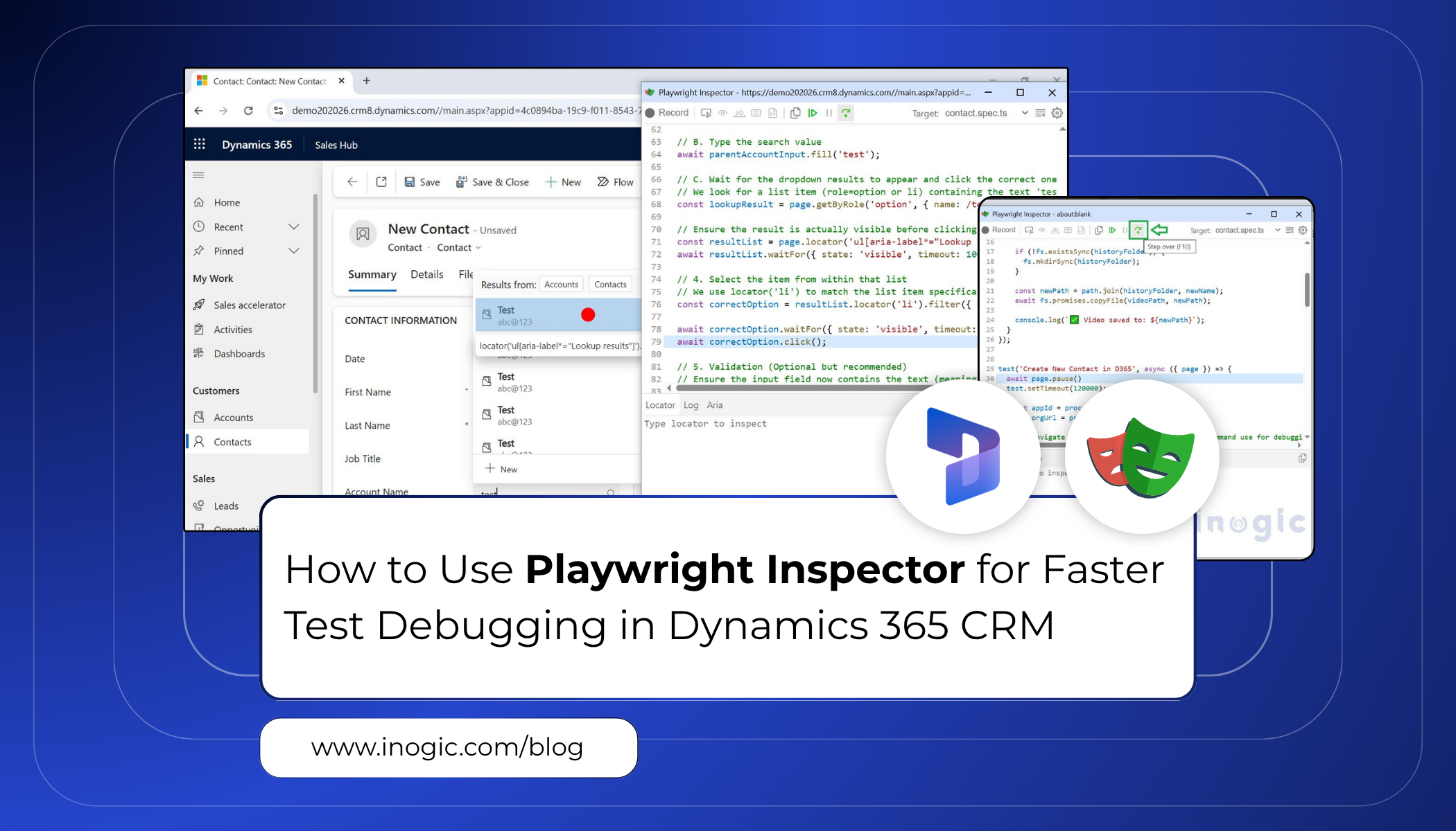 Let’s extend the same use case. While creating a Contact record in Dynamics 365 CRM, we will now work with more complex UI elements such as lookup fields and option set fields. At the same time, we will use the Playwright Inspector for live debugging.