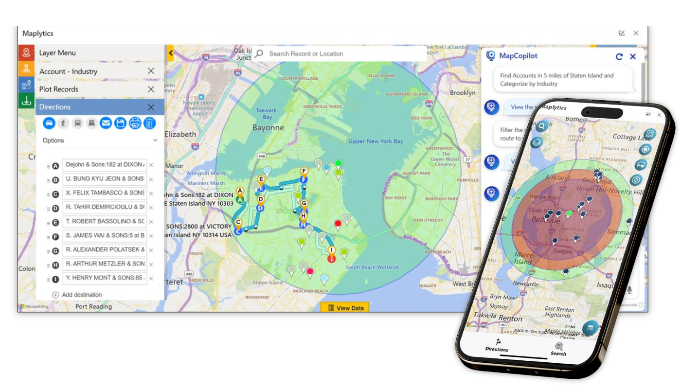 MapCopilot is an AI-powered assistant within Maplytics for Dynamics 365 CRM that transforms natural language prompts into powerful geo-mapping actions. Instead of manually filtering and plotting records, users can type what they need and instantly visualize the CRM results on the map. Whether it’s plotting accounts, running proximity searches, optimizing multi-stop routes, or finding nearby points of interest like hotels and gas stations, etc., MapCopilot simplifies the entire process. It remembers the context, so that you can refine your requests step by step. By merging artificial intelligence with location intelligence, MapCopilot turns routine tasks into time-saving experiences across desktop and mobile.